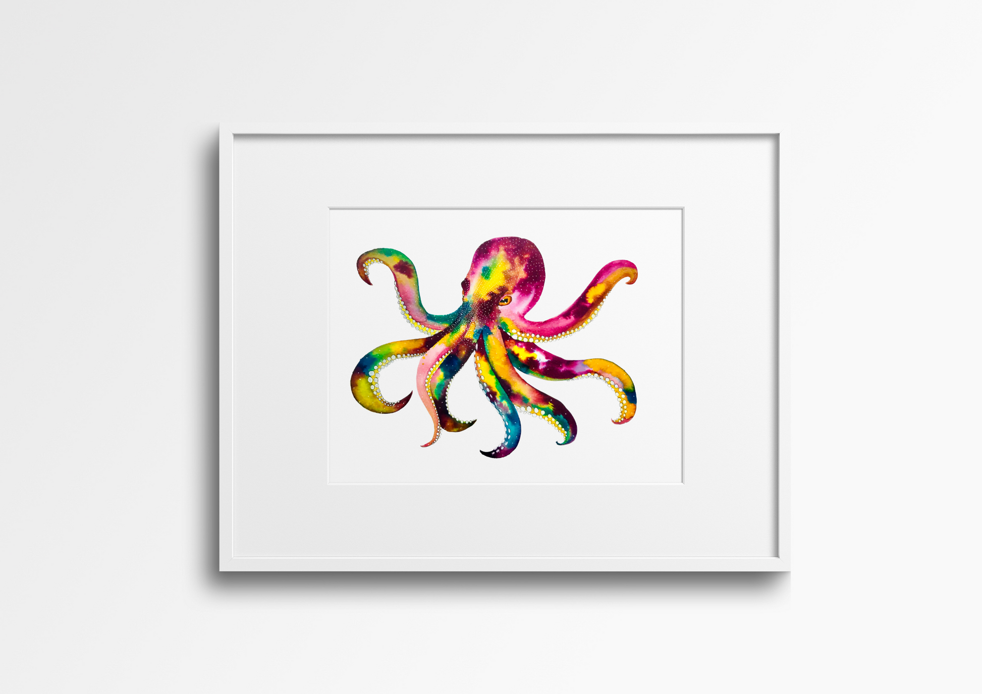 This brightly coloured octopus painting is an original artwork painted using layers of Concentrated Watercolour Paint & Ink, all rights are retained by Kate Mac Art.